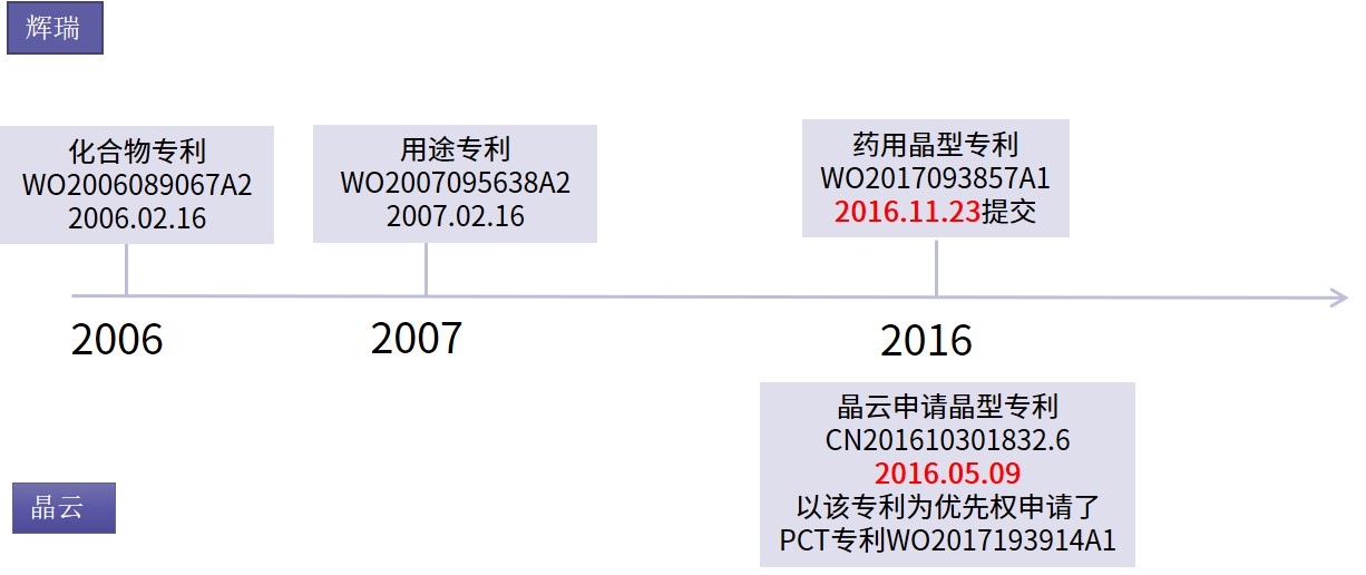 克立硼羅的化合物專利WO2006089067A2在2006年申請,關(guān)鍵用途專利WO2007095638A2于2007年申請,然其藥用晶型專利WO2017093857A1是直到2016年11月23日才正式提交(要求2016年11月11日的優(yōu)先權(quán)日),即藥用晶型專利是在化合物專利申請后10年多、藥物正式批準(zhǔn)上市前幾天才正式提交申請,這也是原研藥企的常用專利布局策略,藥用晶型專利作為關(guān)鍵專利的延后申請很多時候可以很大限度的延長藥物專利保護周期。
