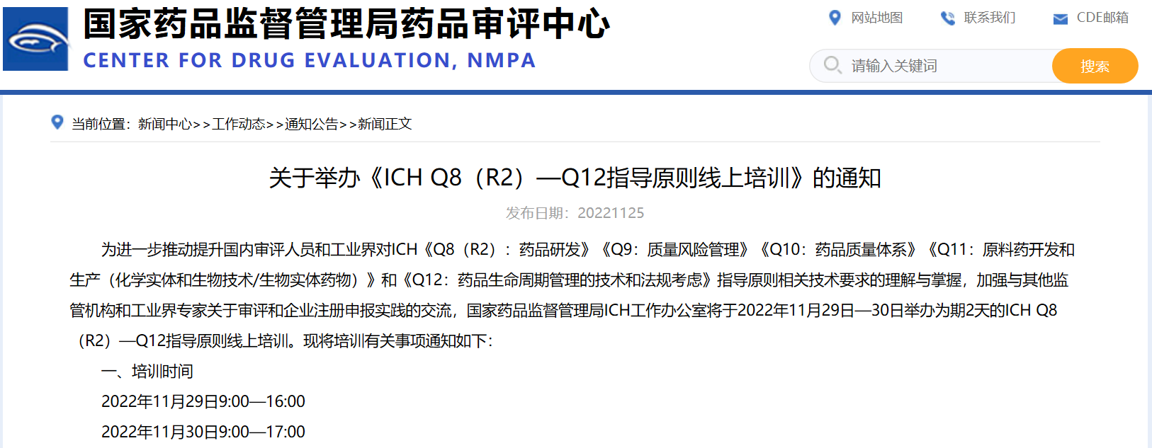 關(guān)于舉辦《ICH Q8(R2)—Q12指導(dǎo)原則線上培訓(xùn)》的通知