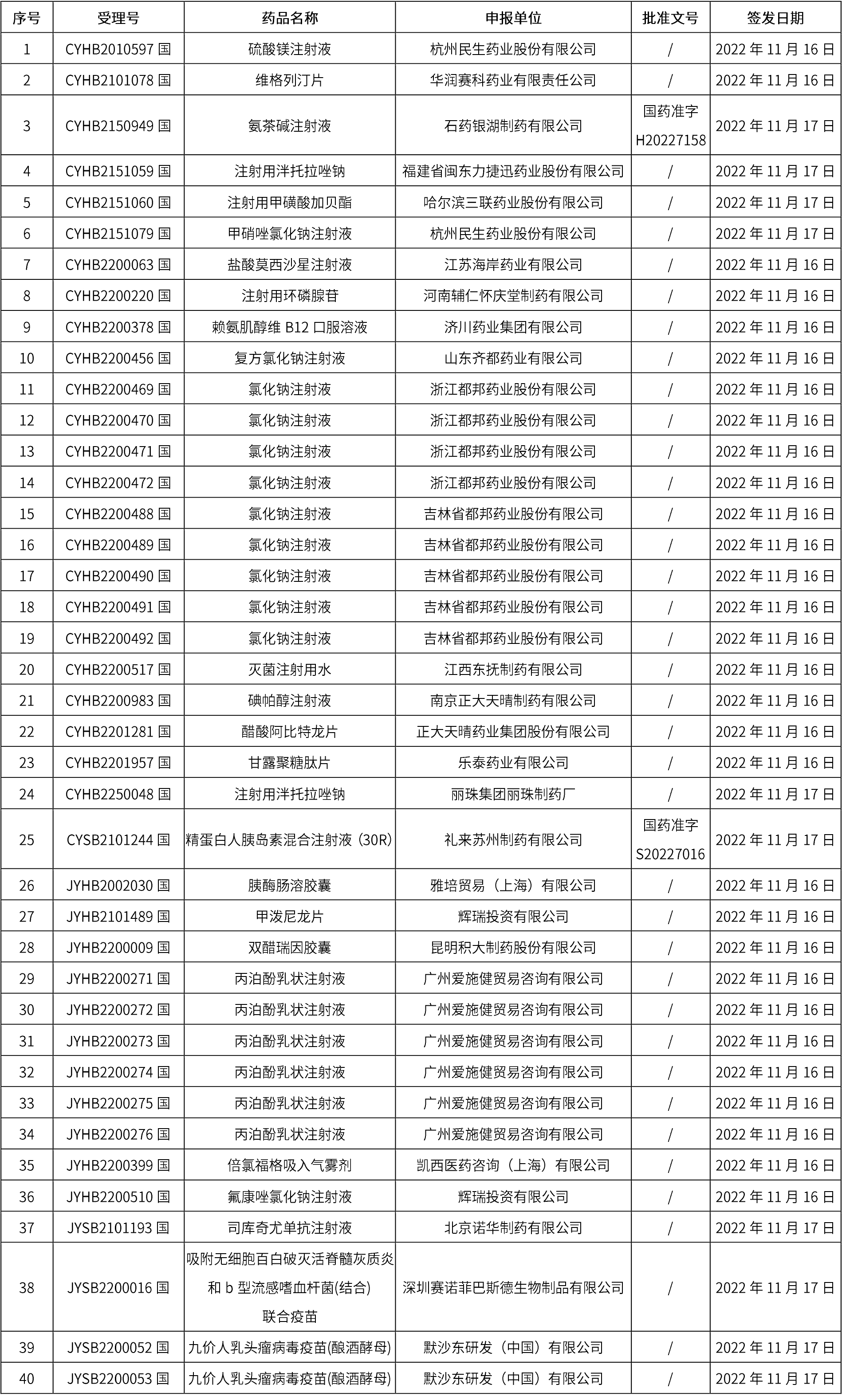 1. 本周(截止到11.25下午12:40)共發(fā)布了40個品規(guī)的藥品批準證明文件待領(lǐng)取信息,其中一致性評價5個,注射劑29個。
