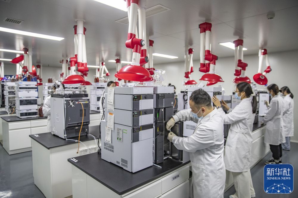 12月16日,在重慶市永川區(qū)新領先(重慶)生物醫(yī)藥一體化研發(fā)服務基地,新領先重慶研究院的研發(fā)人員在液相區(qū)對樣本進行色譜分析。