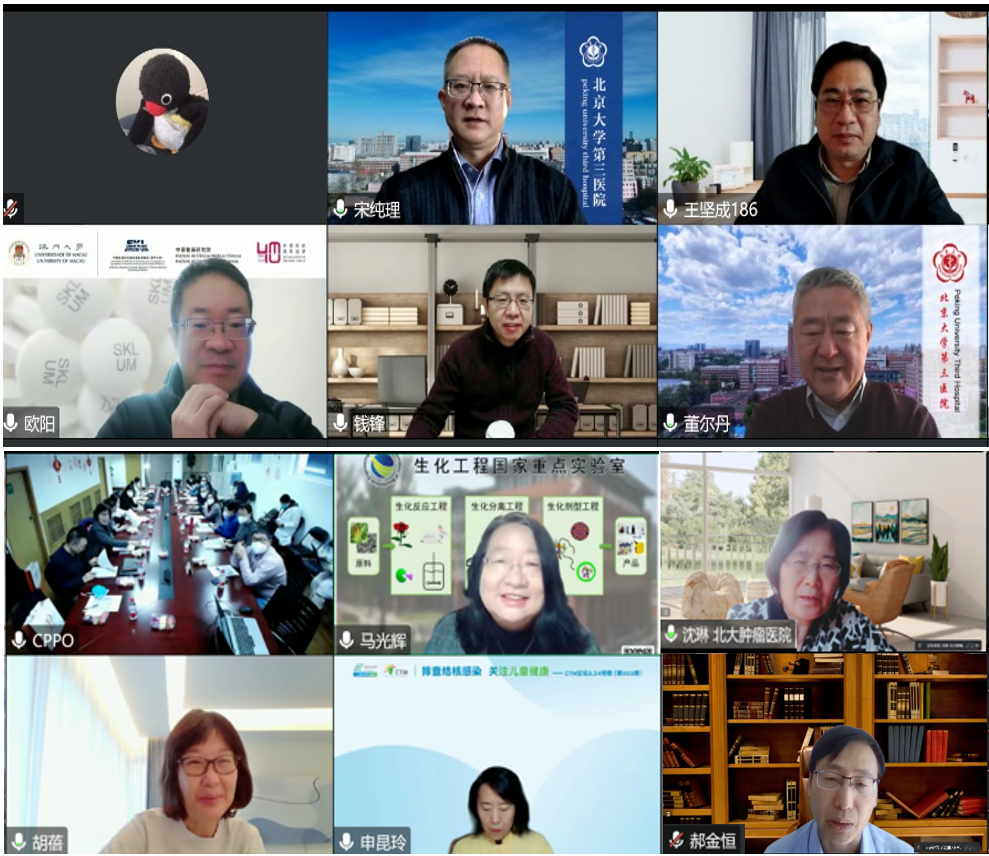 中國(guó)工程院院士、北京大學(xué)心血管研究所所長(zhǎng)、分子心血管學(xué)教育部重點(diǎn)實(shí)驗(yàn)室主任董爾丹院士,中國(guó)科學(xué)院院士、中科院過(guò)程工程研究所研究員、生化工程國(guó)家重點(diǎn)實(shí)驗(yàn)室主任、國(guó)家生化工程技術(shù)研究中心(北京)主任、聯(lián)合研發(fā)中心學(xué)術(shù)委員會(huì)主任委員馬光輝院士;北京大學(xué)醫(yī)學(xué)部科研處處長(zhǎng)王堅(jiān)成教授、北京大學(xué)第三醫(yī)院副院長(zhǎng)宋純理教授、科研處處長(zhǎng)閆麗盈研究員、李海燕副處長(zhǎng)、新領(lǐng)先醫(yī)藥董事長(zhǎng)陶新華先生、總裁高世靜女士、副總裁康建磊先生以及聯(lián)合研發(fā)中心學(xué)術(shù)委員會(huì)委員、北醫(yī)三院兒科主任韓彤妍教授、腫瘤化療與放射病科主任曹寶山主任等40余位專家,通過(guò)線上線下的方式參加了此次會(huì)議。會(huì)議由北京大學(xué)第三醫(yī)院藥物臨床試驗(yàn)機(jī)構(gòu)李海燕主任和藥物臨床試驗(yàn)機(jī)構(gòu)劉東陽(yáng)副主任共同主持。