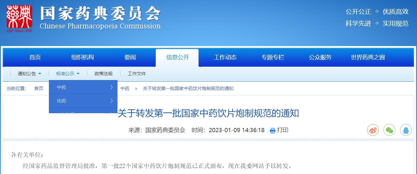 關于轉(zhuǎn)發(fā)第一批國家中藥飲片炮制規(guī)范的通知