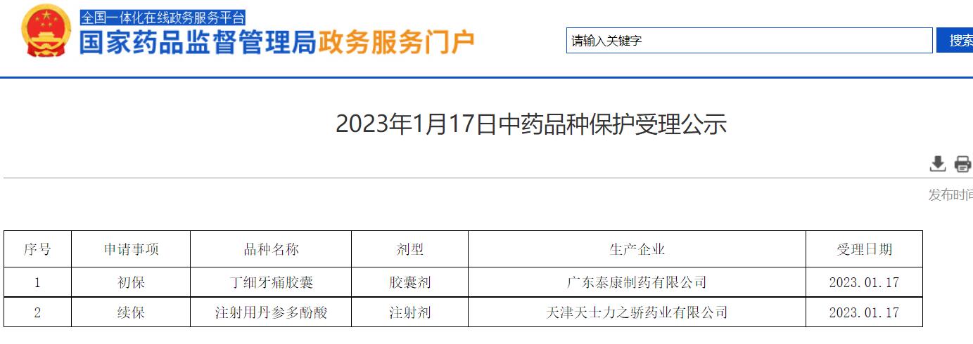 2023年1月17日中藥品種保護受理公示