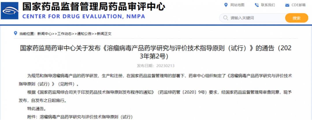 國(guó)家藥監(jiān)局藥審中心關(guān)于發(fā)布《溶瘤病毒產(chǎn)品藥學(xué)研究與評(píng)價(jià)技術(shù)指導(dǎo)原則(試行)》的通告(2023年第2號(hào))