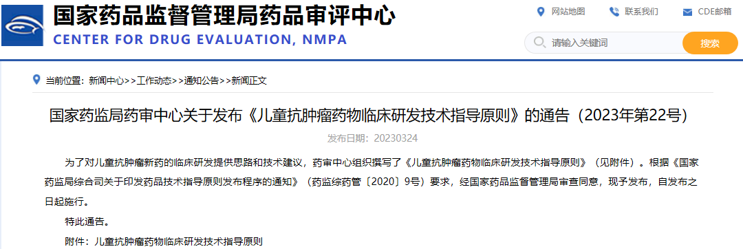 國家藥監(jiān)局藥審中心關(guān)于發(fā)布《兒童抗腫瘤藥物臨床研發(fā)技術(shù)指導原則》的通告(2023年第22號)