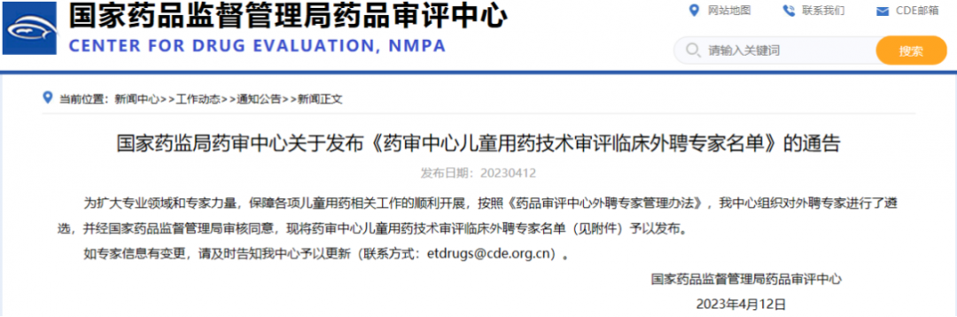 國家藥監(jiān)局藥審中心關(guān)于發(fā)布《藥審中心兒童用藥技術(shù)審評臨床外聘專家名單》的通告