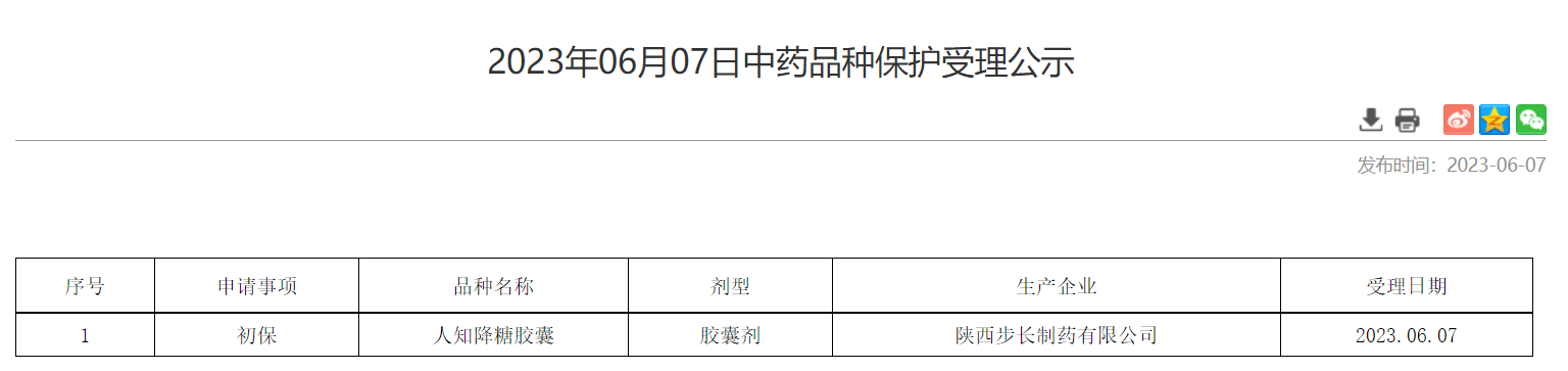 2023年06月07日中藥品種保護受理公示