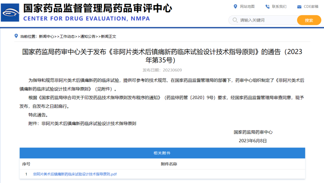 國(guó)家藥監(jiān)局藥審中心關(guān)于發(fā)布《非阿片類(lèi)術(shù)后鎮(zhèn)痛新藥臨床試驗(yàn)設(shè)計(jì)技術(shù)指導(dǎo)原則》的通告(2023年第35號(hào))