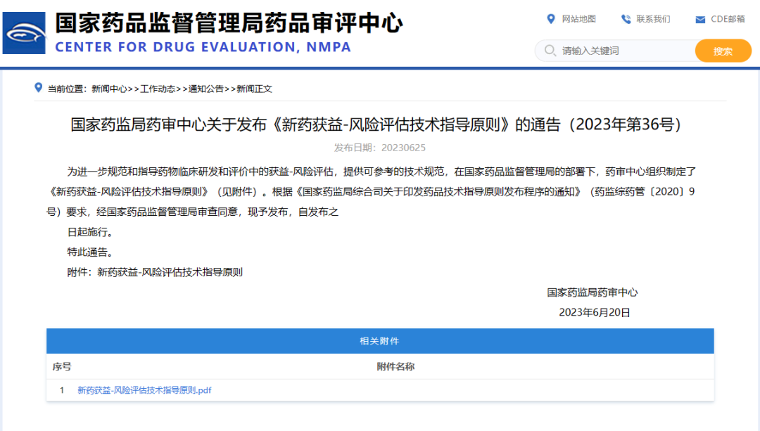 國(guó)家藥監(jiān)局藥審中心關(guān)于發(fā)布《新藥獲益-風(fēng)險(xiǎn)評(píng)估技術(shù)指導(dǎo)原則》的通告(2023年第36號(hào))