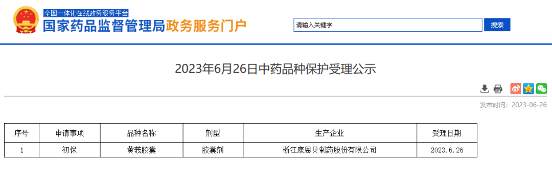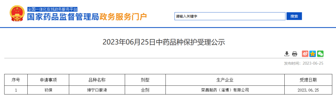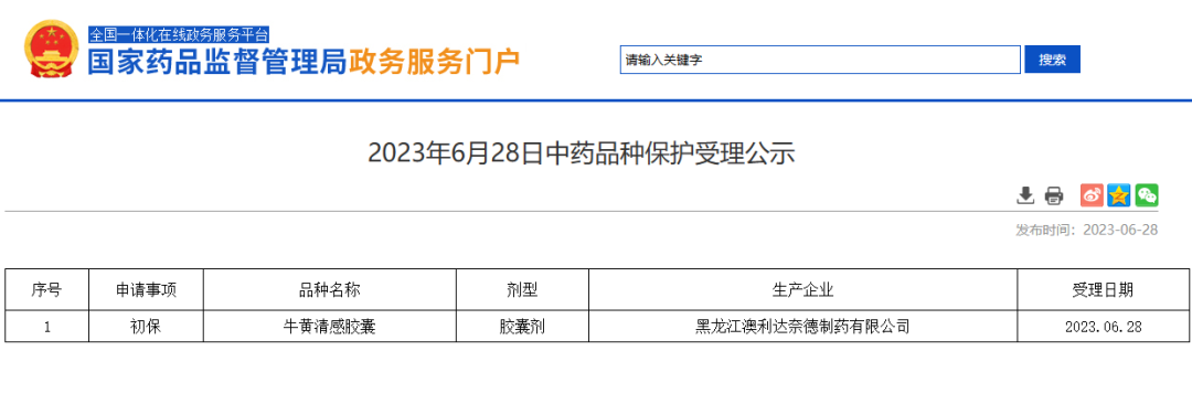 2023年06月25日中藥品種保護(hù)受理公示