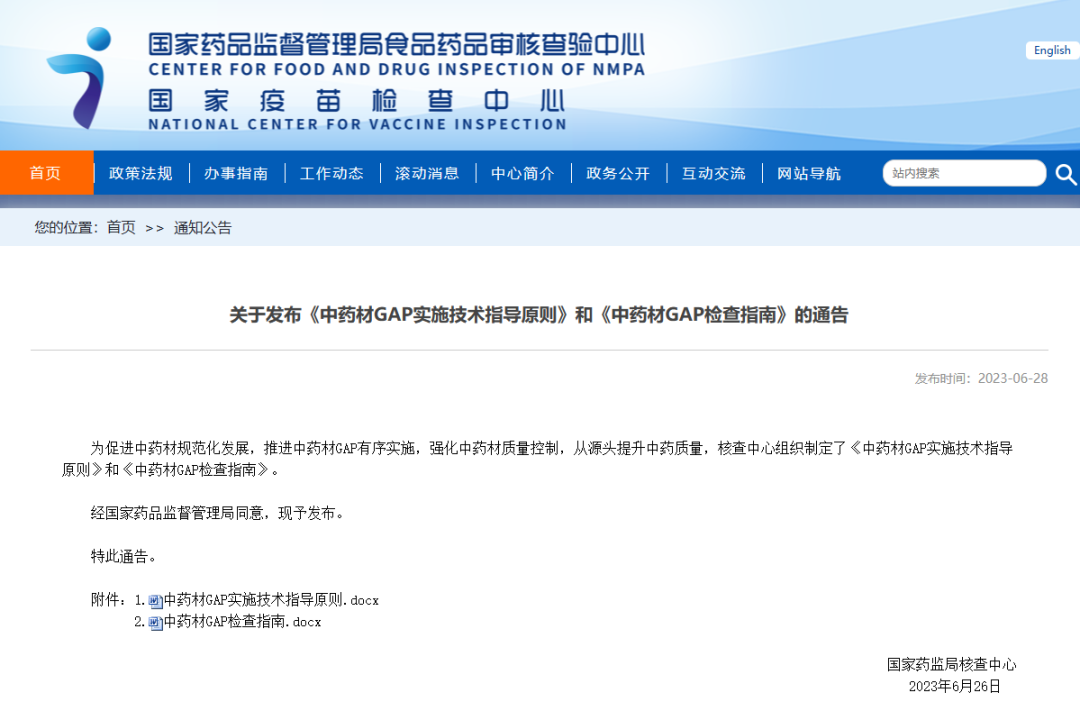關(guān)于發(fā)布《中藥材GAP實(shí)施技術(shù)指導(dǎo)原則》和《中藥材GAP檢查指南》的通告