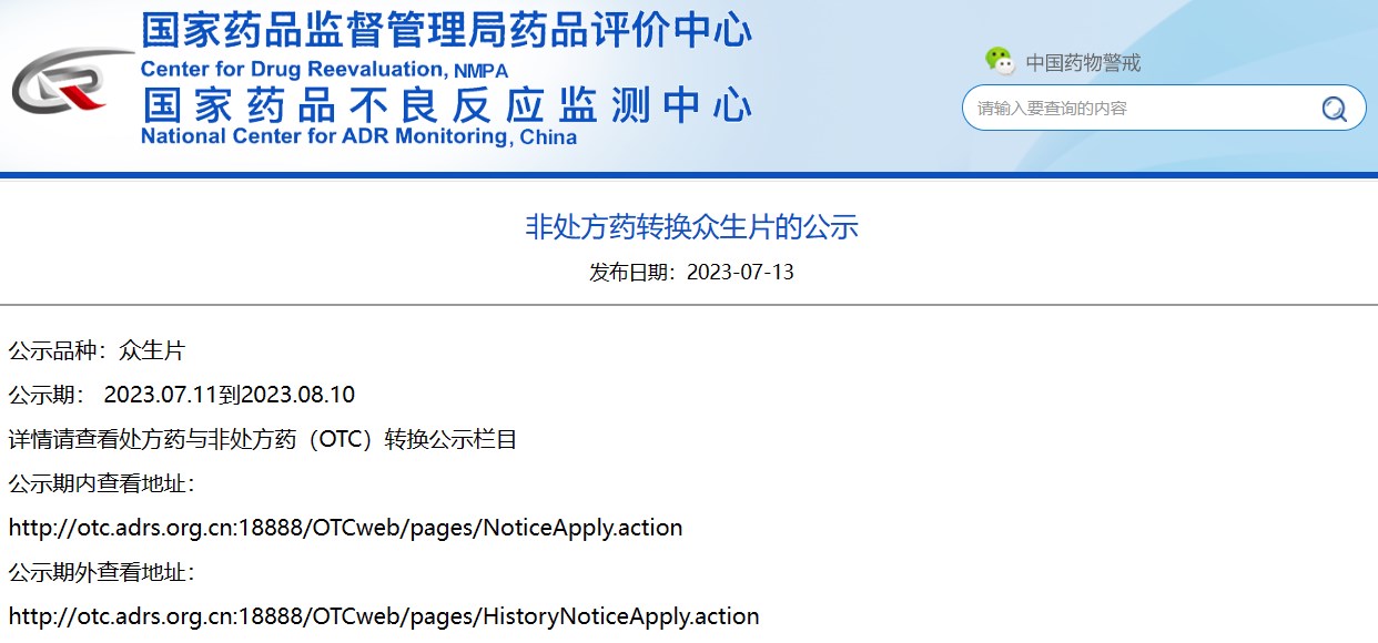 非處方藥轉換眾生片的公示