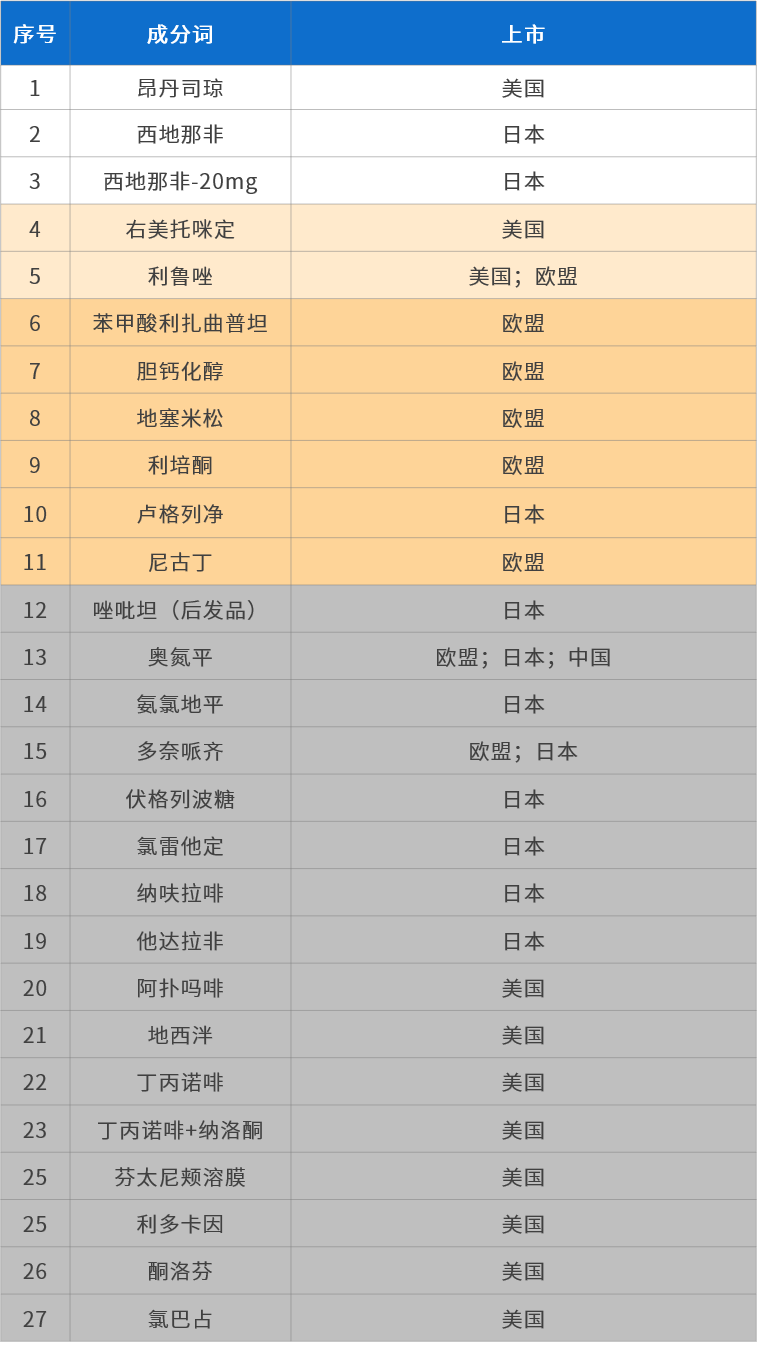 圖2 國際口溶膜上市產(chǎn)品情況匯總