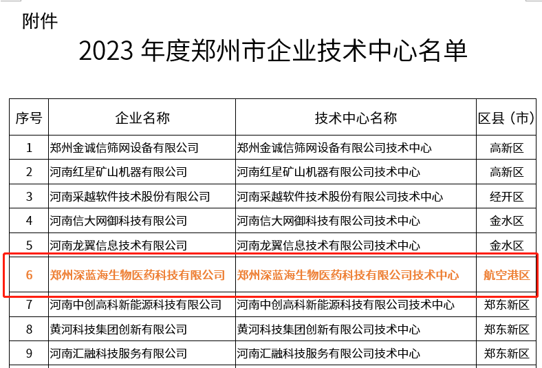 近日,鄭州市工業(yè)和信息化局公示了2023年度鄭州市企業(yè)技術(shù)中心名單,新領(lǐng)先·深藍海(鄭州)成功入選,這是繼獲評“高新技術(shù)企業(yè)”、“河南省專精特新中小企業(yè)”、“鄭州市專精特新中小企業(yè)”、“鄭州市MAH平臺及液體制劑工程研究中心”等榮譽后的又一項榮譽。