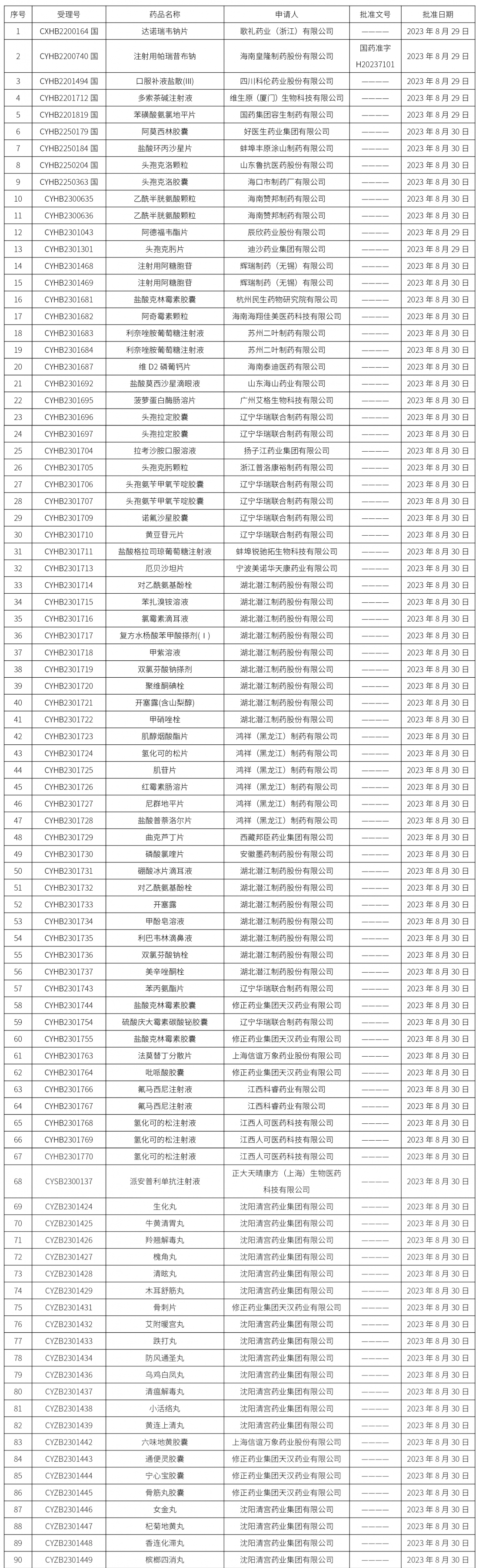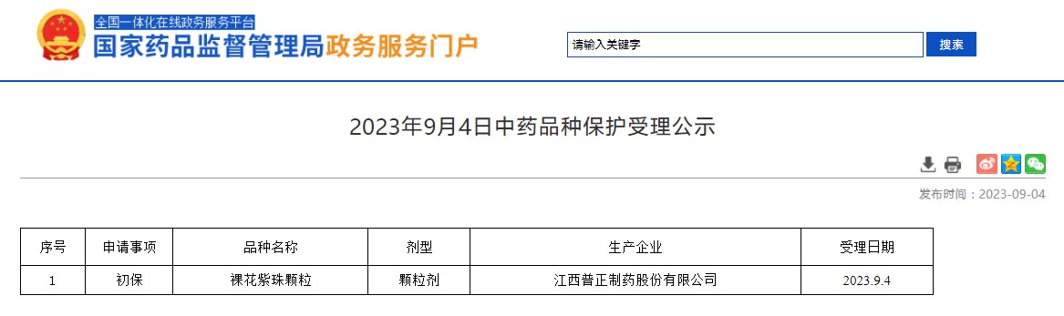 2023年9月4日中藥品種保護(hù)受理公示