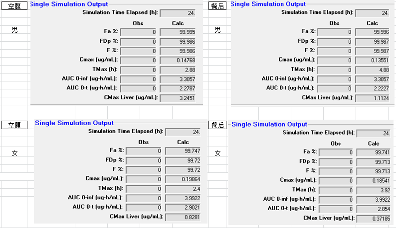 研究結(jié)果表明,PK參數(shù)受性別影響,處方變更后BCSI類化合物食物對PK參數(shù)無顯著影響。建模模擬結(jié)果與文獻(xiàn)報道結(jié)果相似,運用模型可準(zhǔn)確預(yù)測處方變更后BCS I類化合物的空腹及餐后PK參數(shù),預(yù)測處方變更后食物效應(yīng)情況。