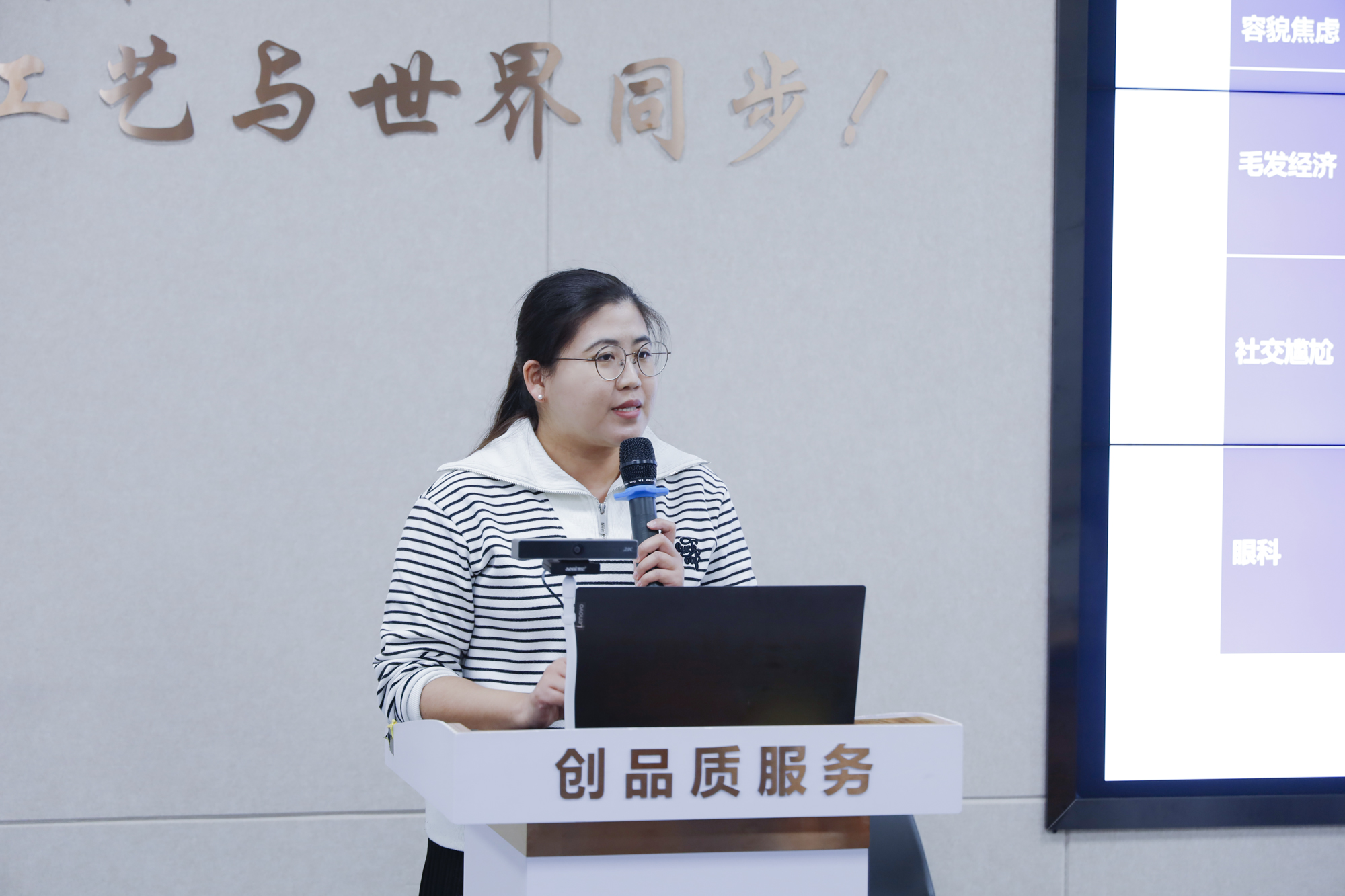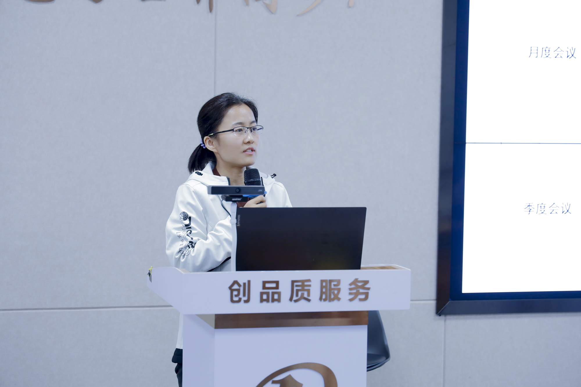 ▲新領先總裁助理兼綜合信息部總監(jiān)劉芳女士(左)、藥酚享李媛老師(右)分別代表雙方作工作總結匯報