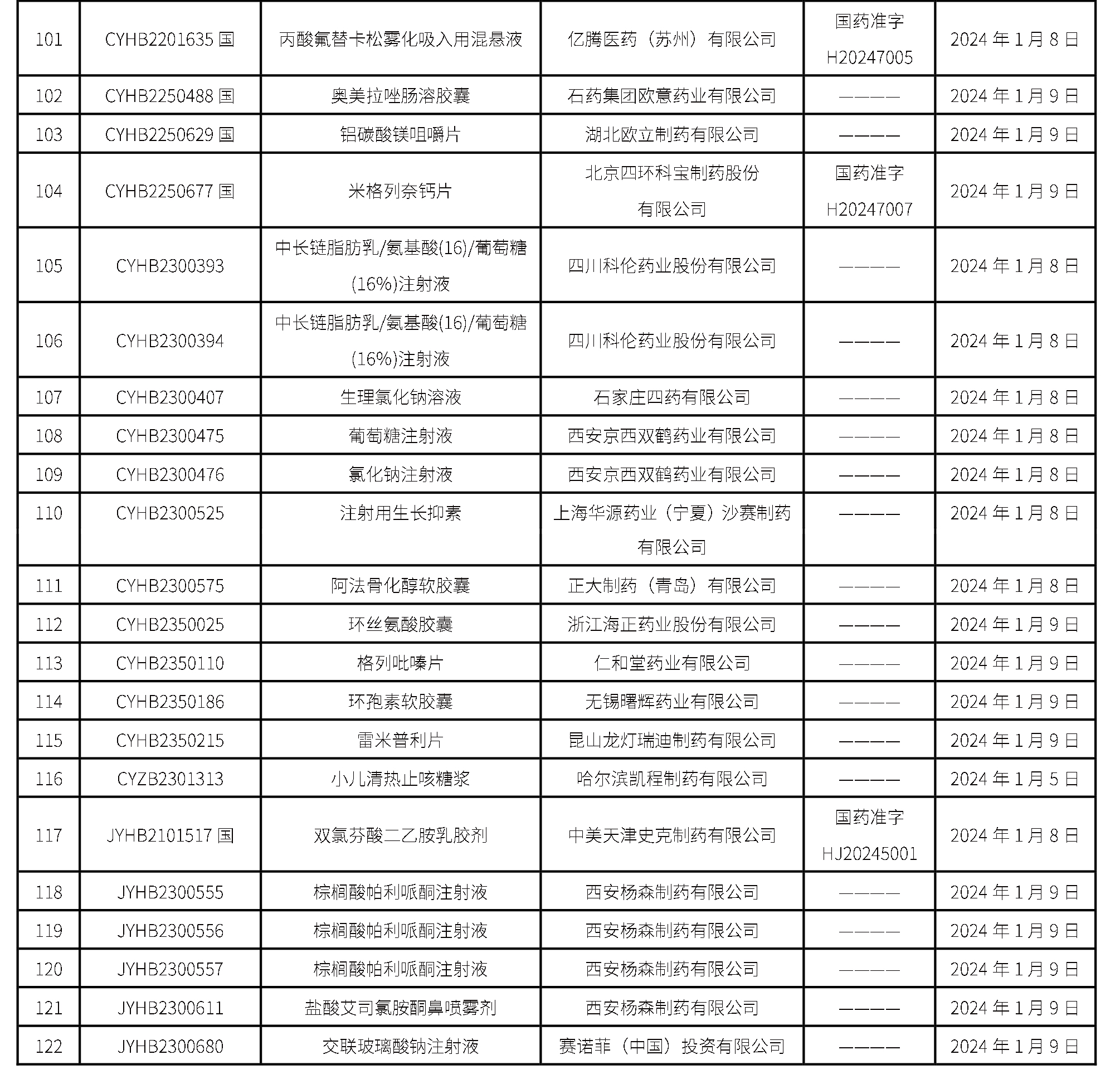 截至2024年1月12日 15:00本周發(fā)布122個(gè)待領(lǐng)取藥品批準(zhǔn)證明文件,其中注射液48個(gè),一致性評(píng)價(jià)品種36個(gè)。
