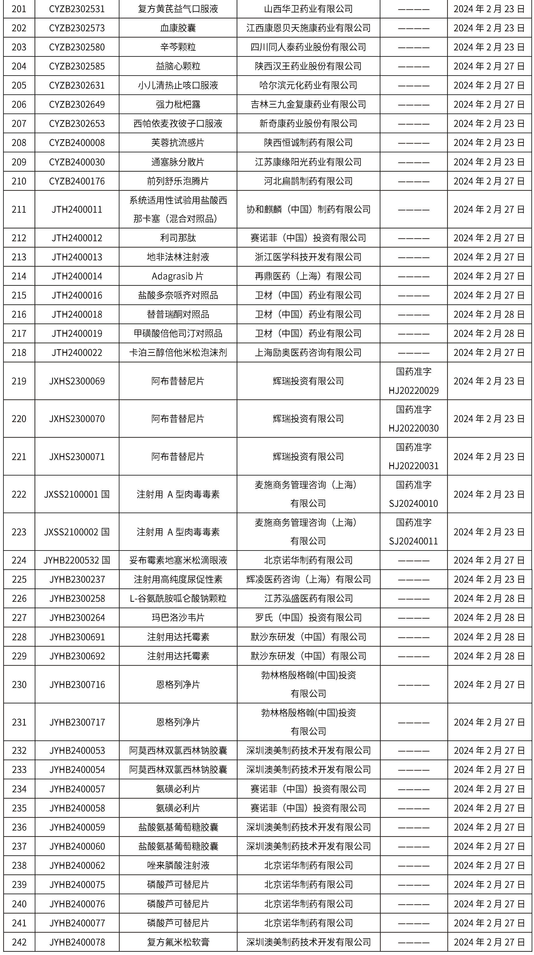 1. 截止2024年3月1日 15:00本周發(fā)布242個待領取藥品批準證明文件,其中注射液78個,一致性評價品種14個。