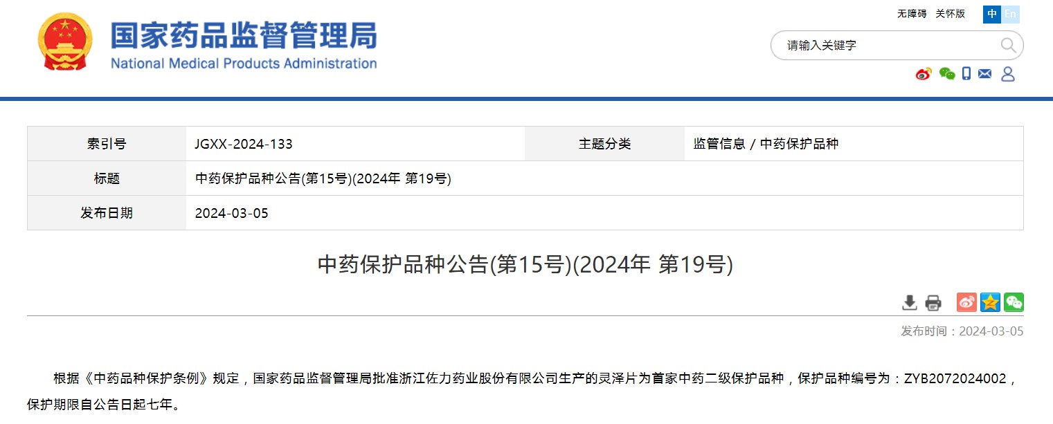 中藥保護(hù)品種公告(第15號)(2024年 第19號)