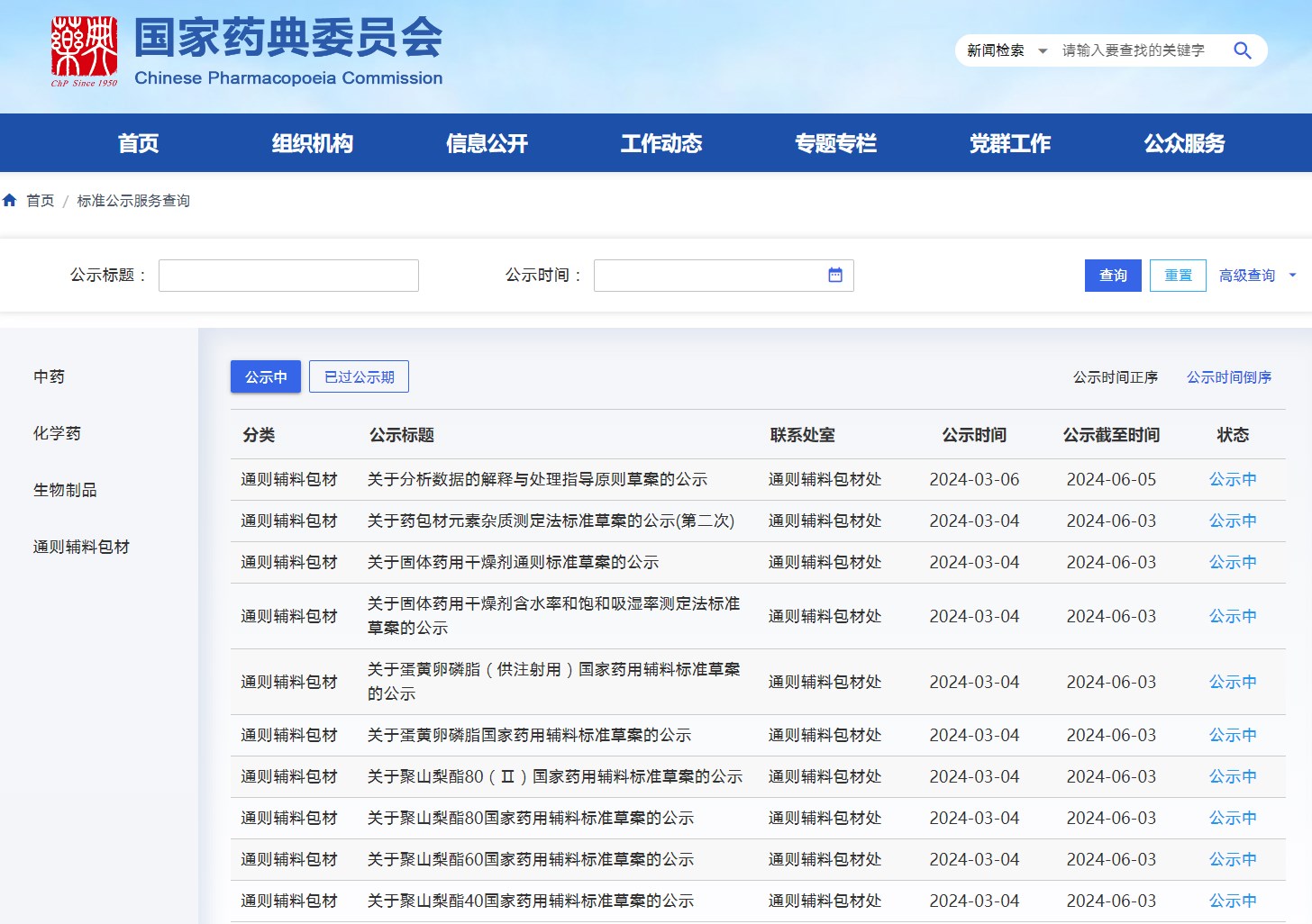本周藥典委發(fā)布7種藥用輔料標(biāo)準(zhǔn)草案,1種指導(dǎo)原則草案,2種測定法標(biāo)準(zhǔn)草案等公示。