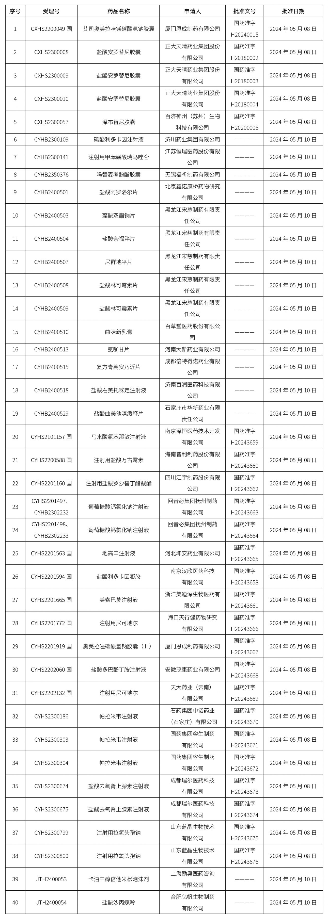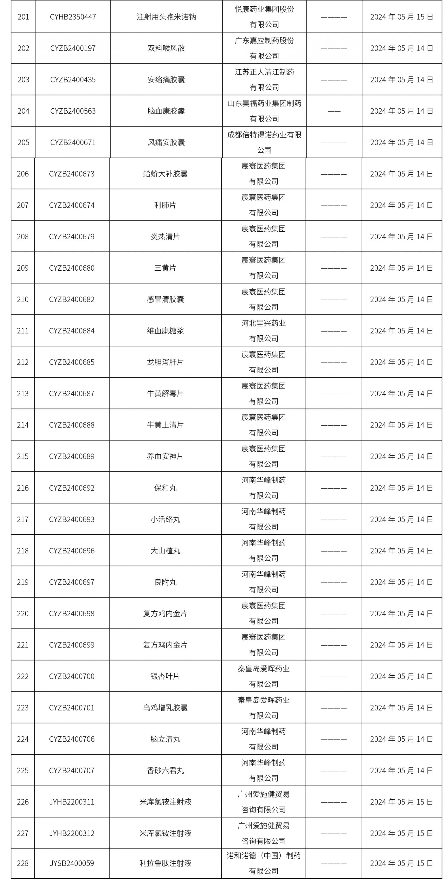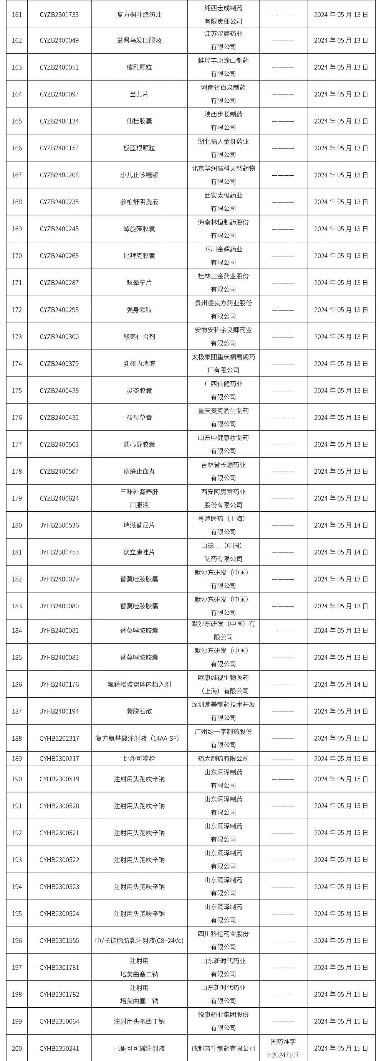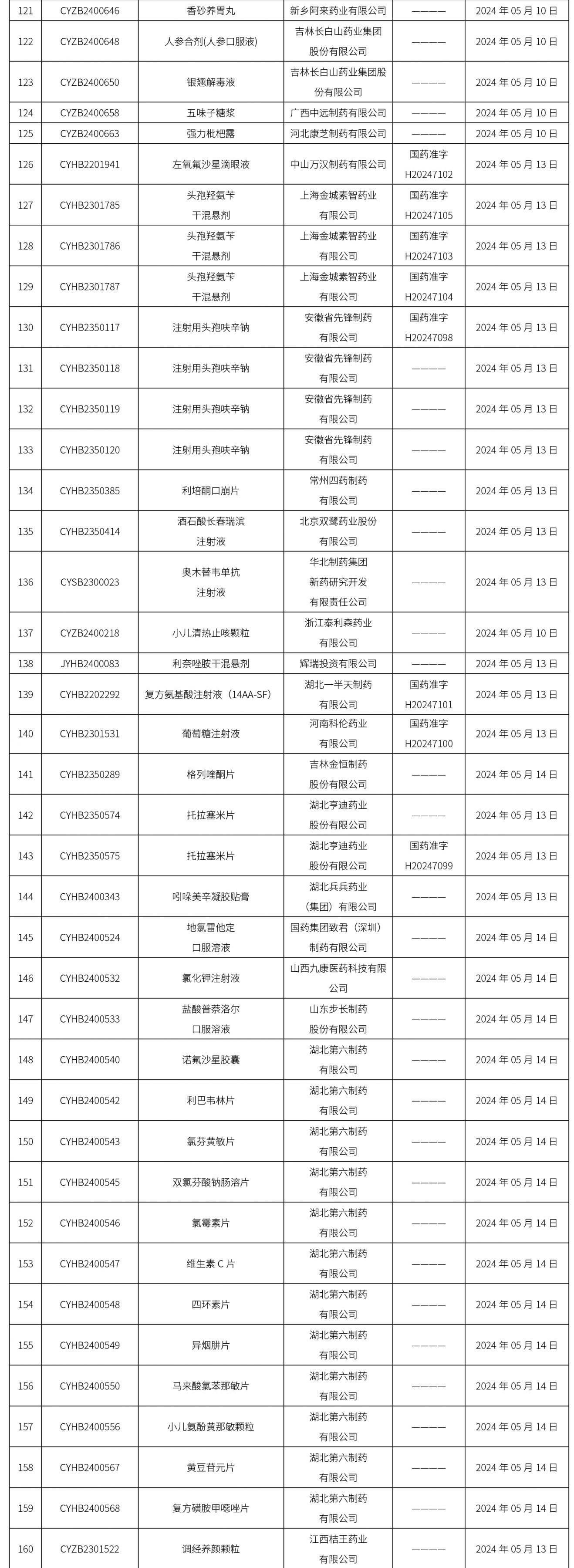 2024年05月16日中藥品種保護受理公示