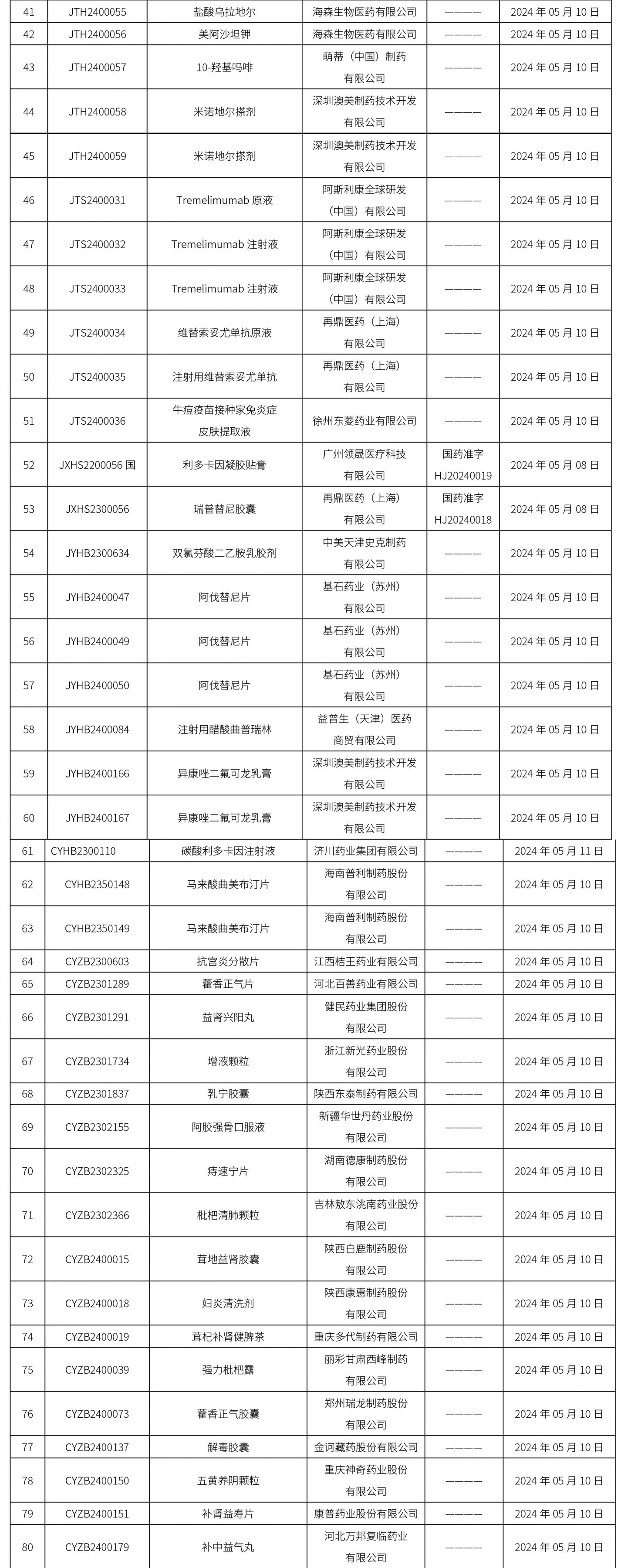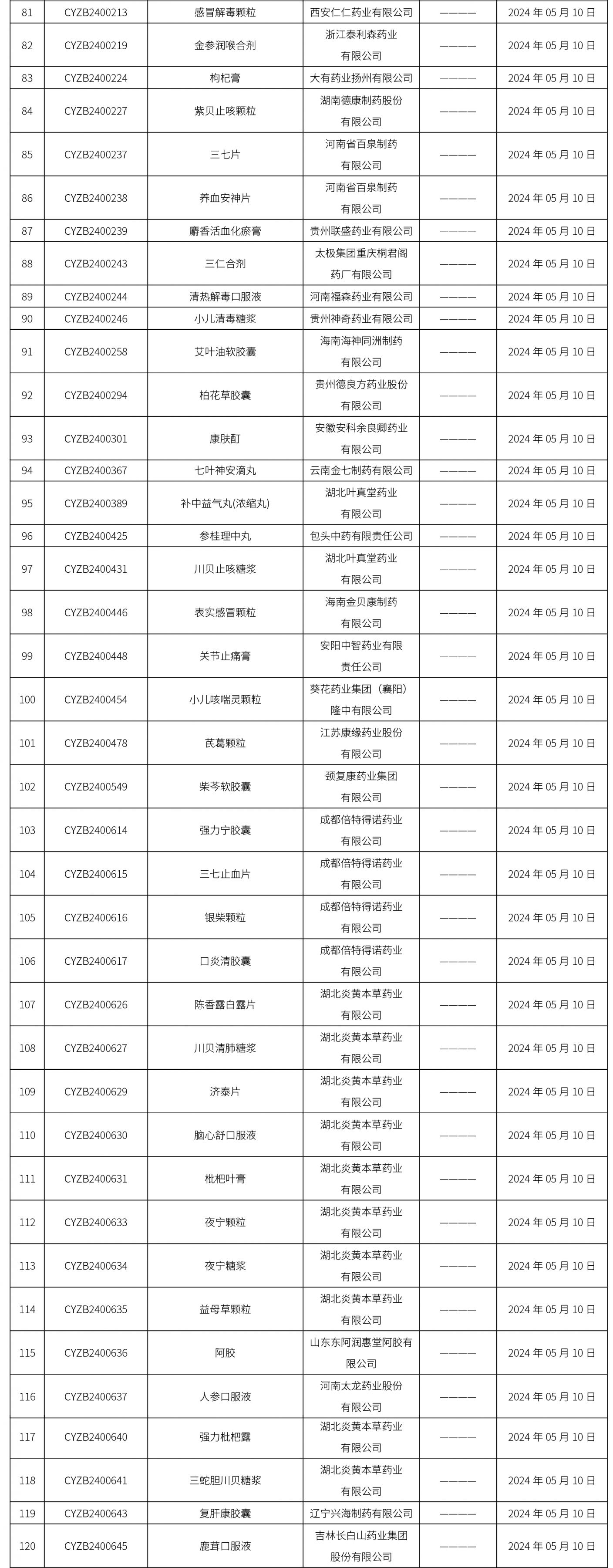 2024年05月11日中藥品種保護受理公示