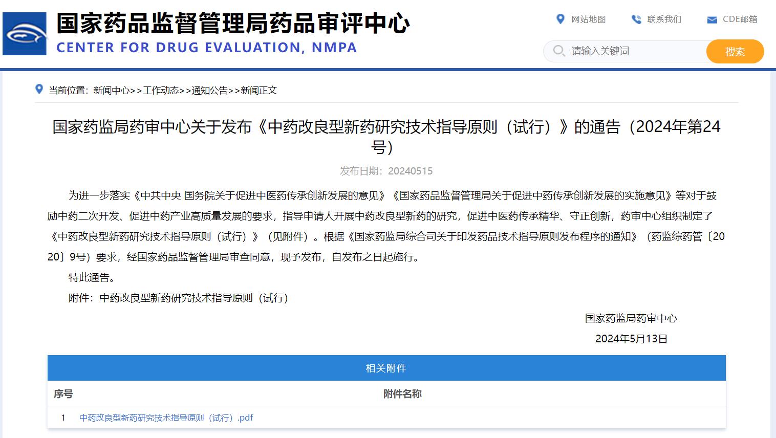 國家藥監(jiān)局藥審中心關于發(fā)布《中藥改良型新藥研究技術指導原則(試行)》的通告(2024年第24號)