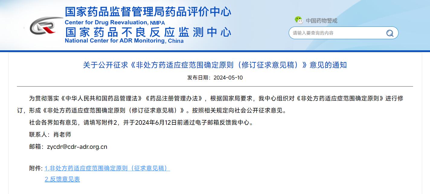 關于公開征求《非處方藥適應癥范圍確定原則(修訂征求意見稿)》意見的通知