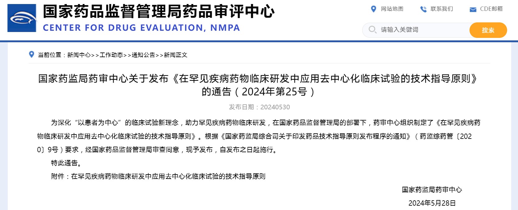 國家藥監(jiān)局藥審中心關(guān)于發(fā)布《在罕見疾病藥物臨床研發(fā)中應(yīng)用去中心化臨床試驗(yàn)的技術(shù)指導(dǎo)原則》的通告(2024年第25號(hào))