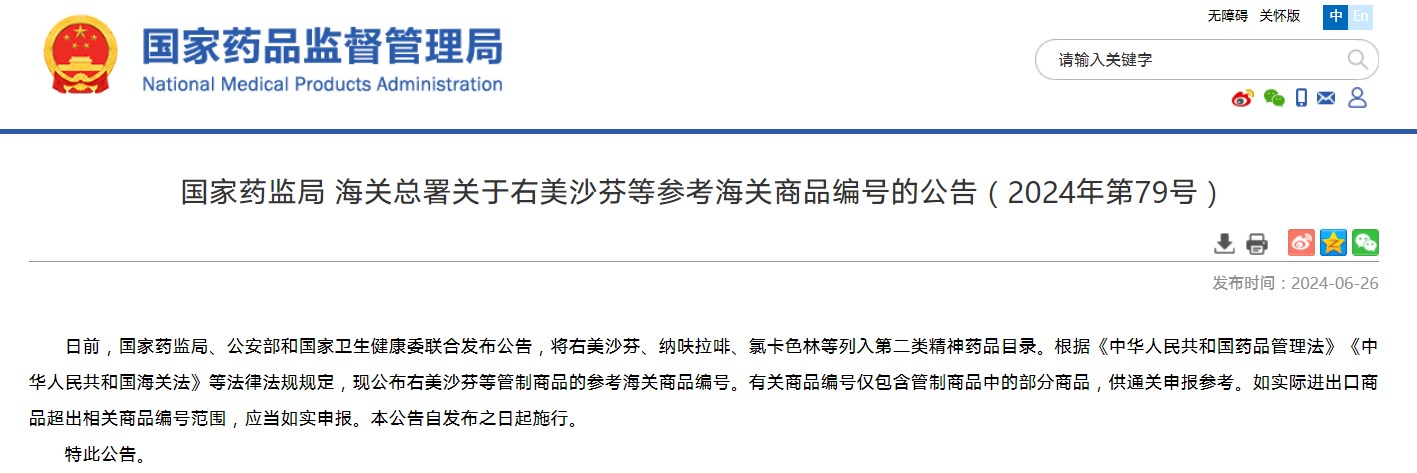 海關(guān)總署關(guān)于右美沙芬等參考海關(guān)商品編號(hào)的公告