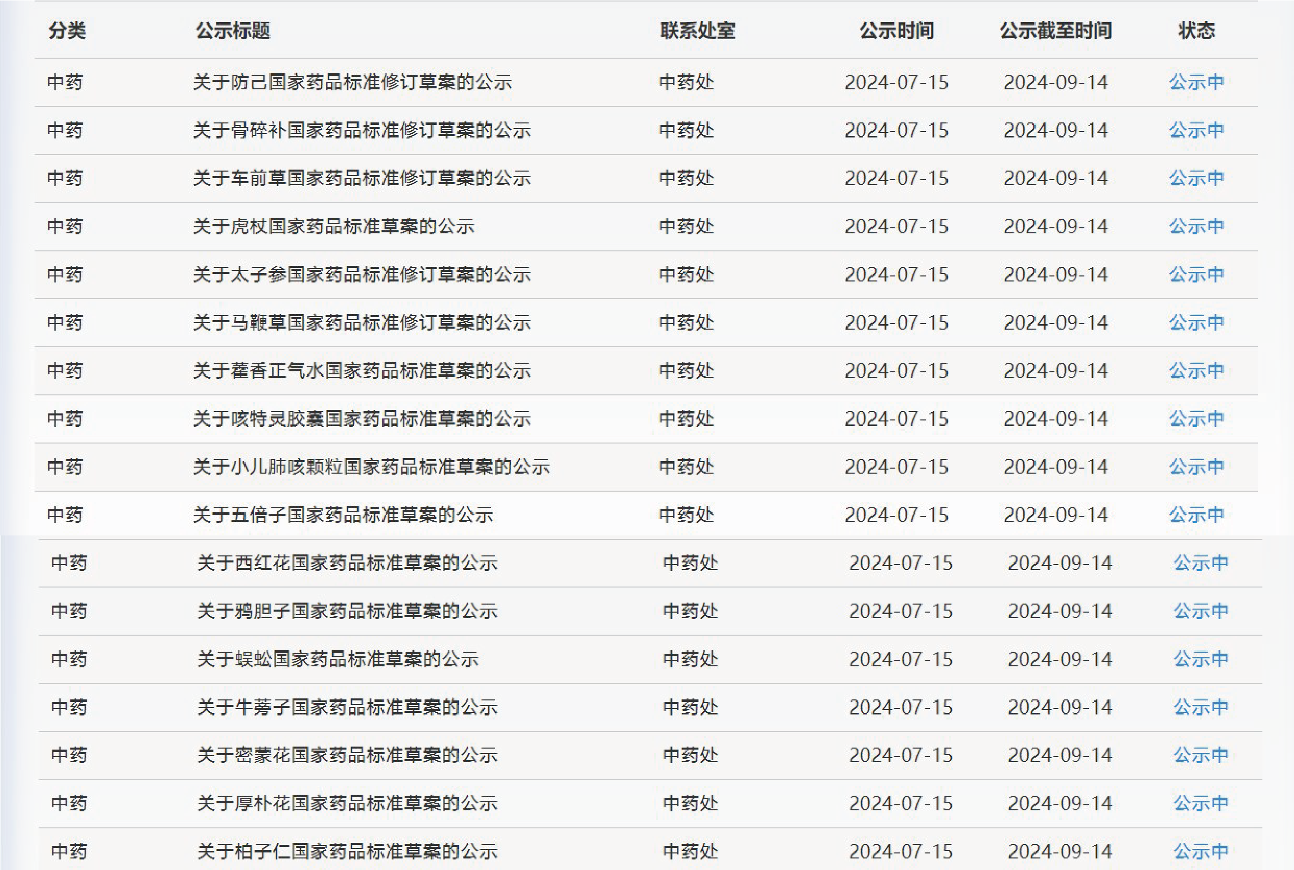 本周,藥典委發(fā)布的標準草及修訂草案公示如下: