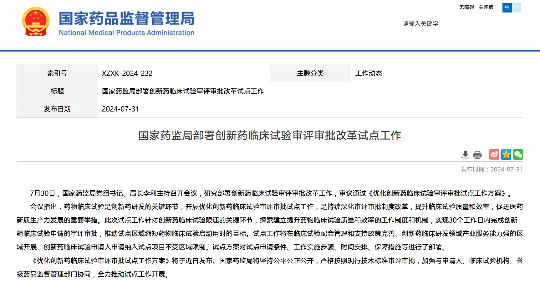 國家藥監(jiān)局部署創(chuàng)新藥臨床試驗審評審批改革試點工作(附法規(guī)概覽07.29-08.02)