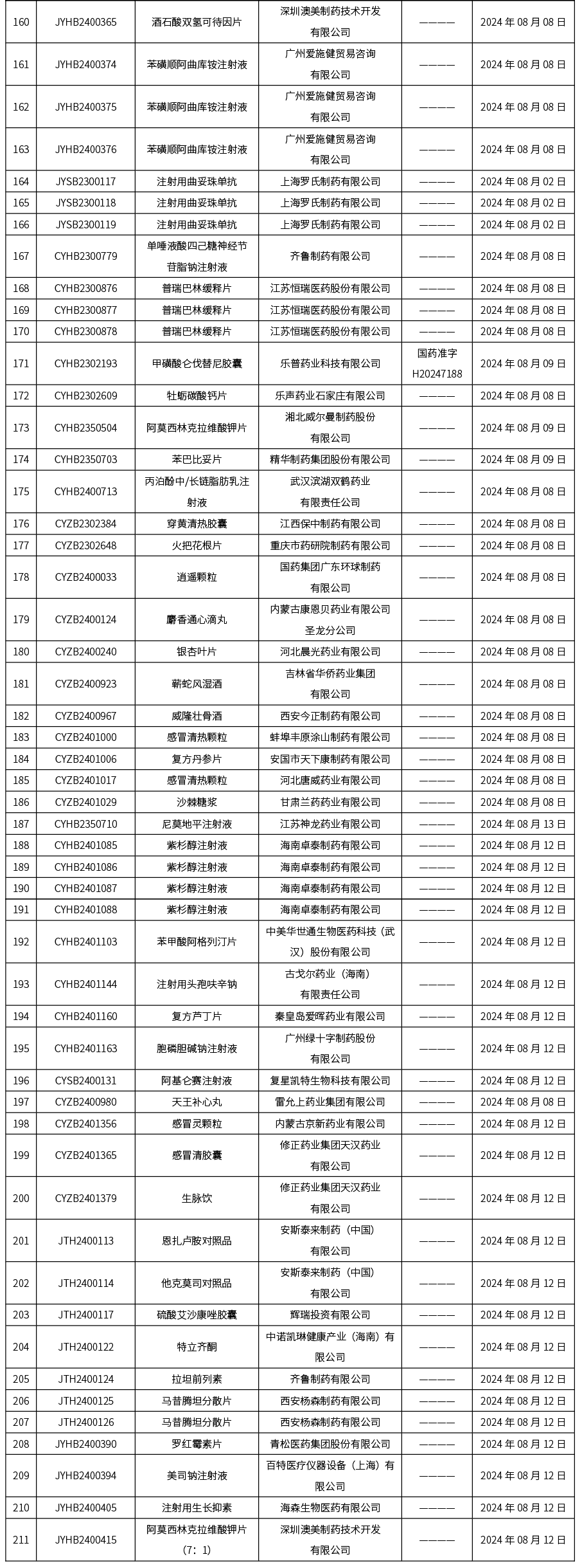 本周(截至8月16日16:00)共發(fā)布藥品批準證明文件送達信息211 個,其中一致性評價7個,注射劑61個。
