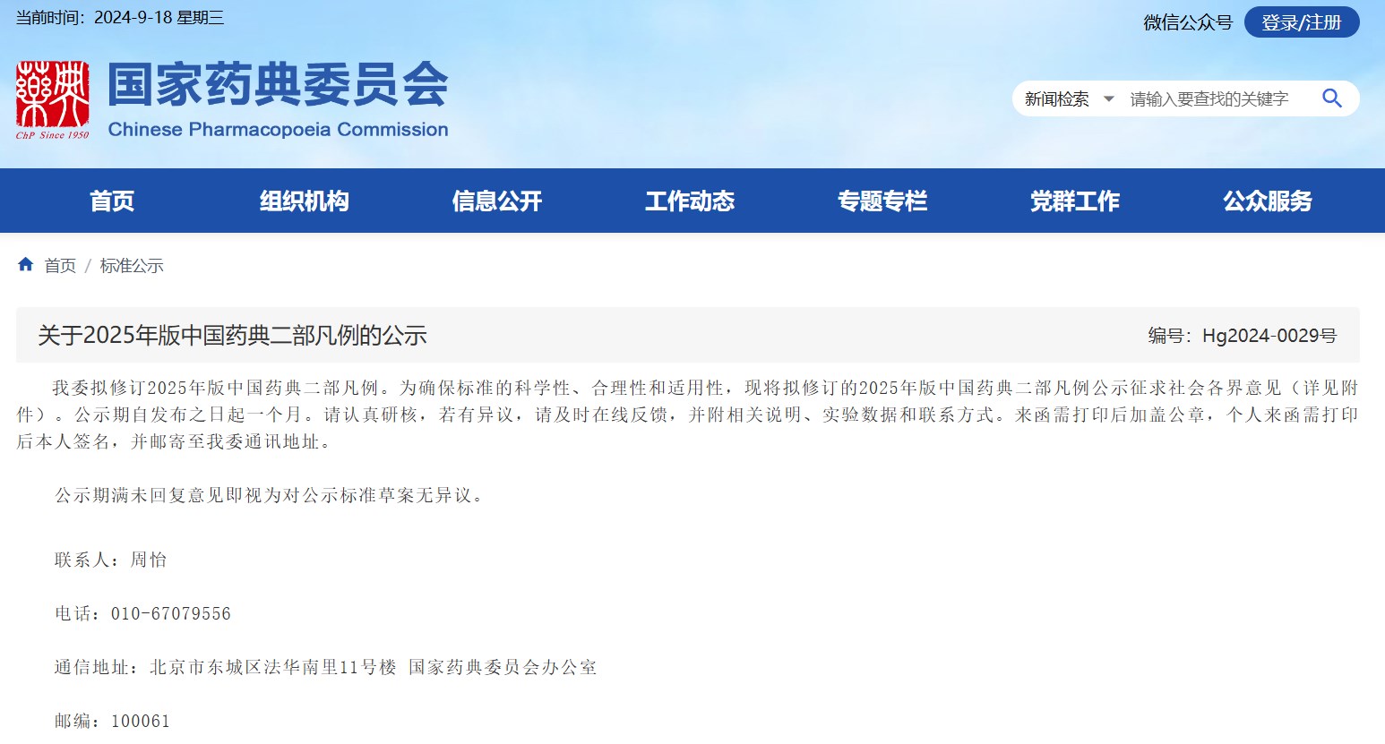 關(guān)于2025年版中國(guó)藥典二部凡例的公示