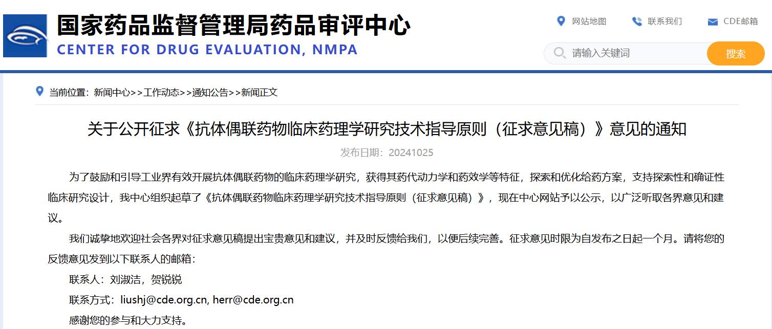 關(guān)于公開(kāi)征求《抗體偶聯(lián)藥物臨床藥理學(xué)研究技術(shù)指導(dǎo)原則(征求意見(jiàn)稿)》意見(jiàn)的通知