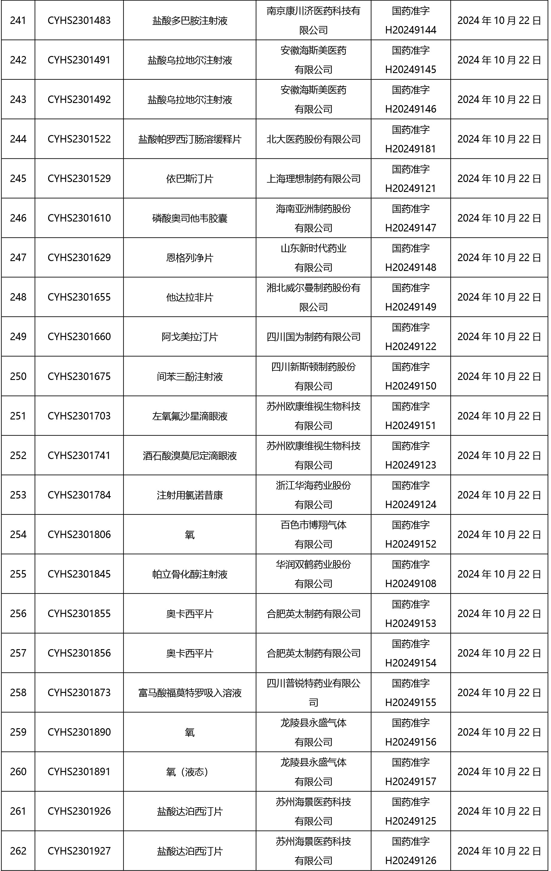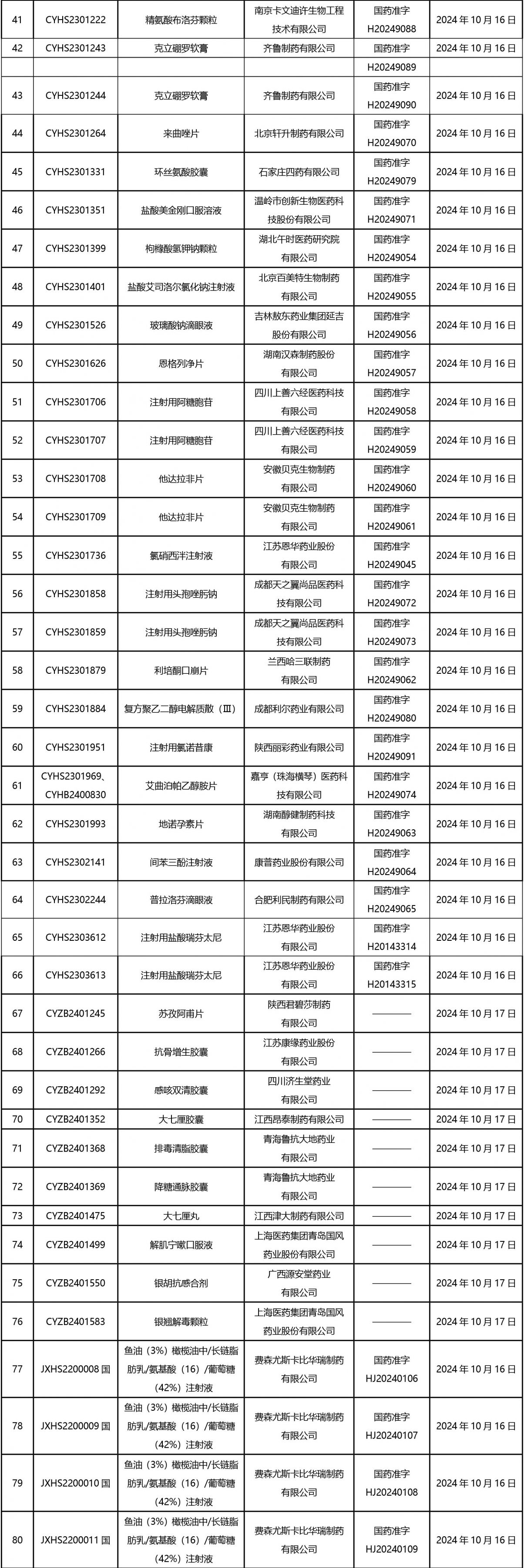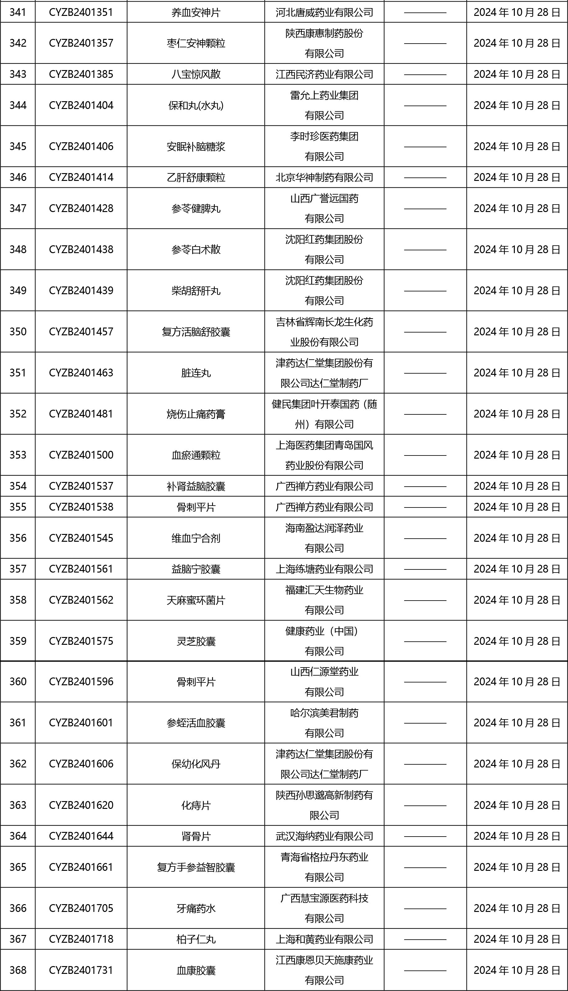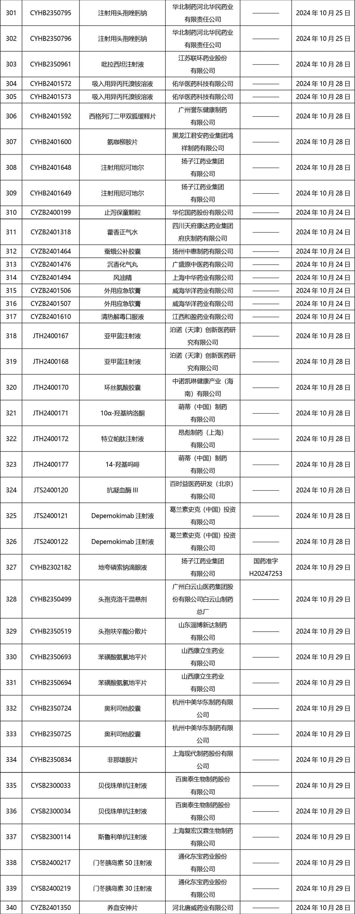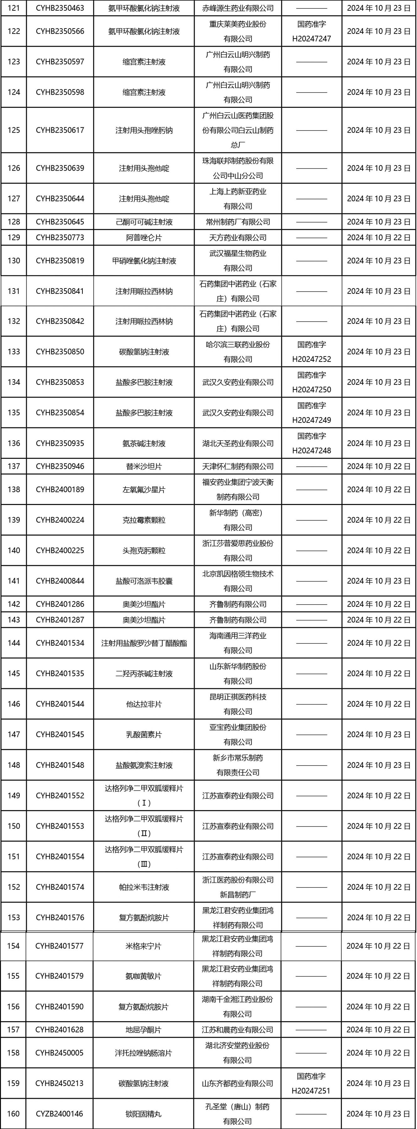 2024年10月21日至2024年11月1日 16:00發(fā)布368個(gè)待領(lǐng)取藥品批準(zhǔn)證明文件,其中注射液125個(gè),一致性評(píng)價(jià)品種45個(gè)。