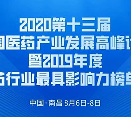 2020年8月6日-8日,由中華全國(guó)工商業(yè)聯(lián)合會(huì)醫(yī)藥業(yè)商會(huì)、贛江新區(qū)管委會(huì)主辦,中國(guó)(南昌)中醫(yī)藥科創(chuàng)城管委會(huì)承辦的“2020第十三屆中國(guó)醫(yī)藥產(chǎn)業(yè)發(fā)展高峰論壇暨2019年度中國(guó)醫(yī)藥行業(yè)最具影響力榜單發(fā)布會(huì)”,將在南昌香格里拉大酒店召開。蒞臨會(huì)議的領(lǐng)導(dǎo)和嘉賓圍繞著宏觀經(jīng)濟(jì)形勢(shì)、醫(yī)藥產(chǎn)業(yè)發(fā)展現(xiàn)狀、新冠疫情影響等方面開展全方位的分析與研討,論壇現(xiàn)場(chǎng)還邀請(qǐng)了多位醫(yī)藥行業(yè)各領(lǐng)域領(lǐng)軍人物進(jìn)行對(duì)話,問道產(chǎn)業(yè)趨勢(shì)。 -