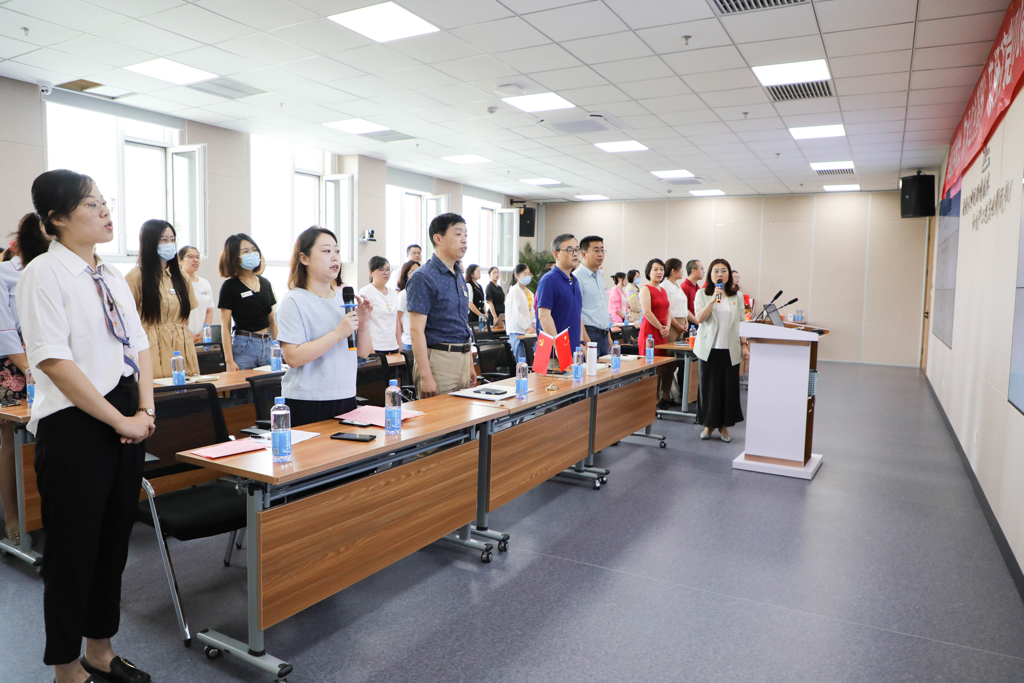 On this special day, under the leadership of  Ms. Gao Shijing, the president of Leadingpharm, party members all solemnly stood and reviewed the oath of pharmaceutical practitioners together.