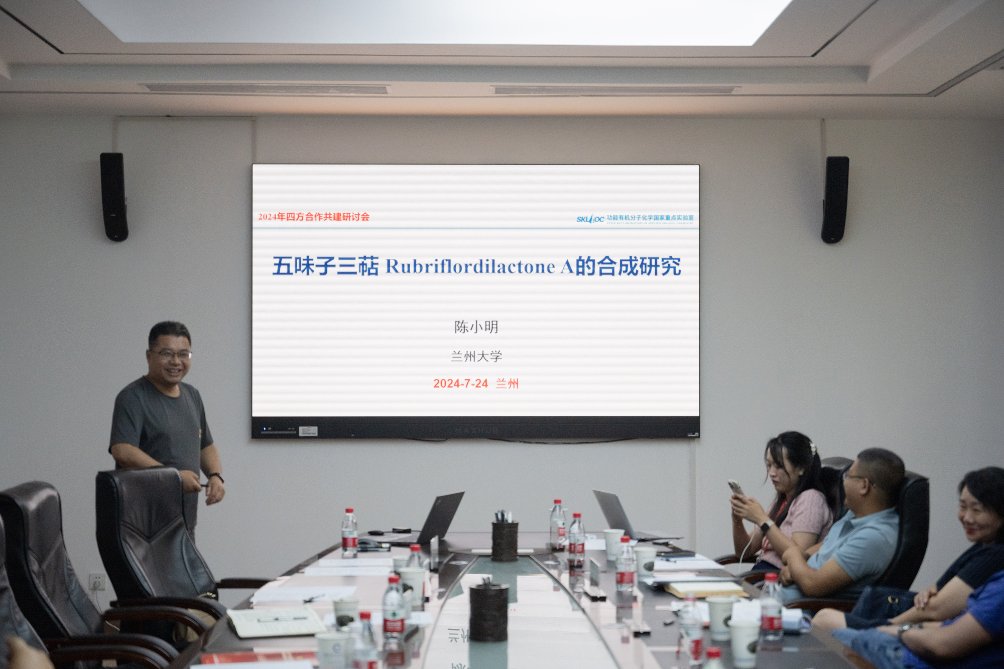 Professor Chen Xiaoming from Lanzhou University presented the synthetic route to the schinortriterpenoid Rubriflordilactone A and shared the difficulties and challenges he encountered during the research.