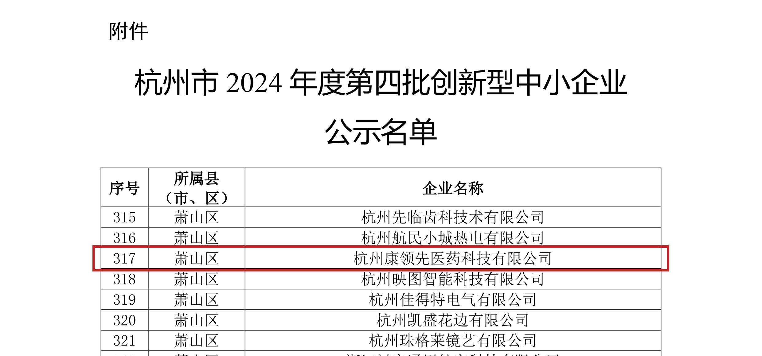 Recently, the Hangzhou Municipal Bureau of Economy and Information Technology (Municipal Digital Economy Bureau) announced the evaluation results of the fourth batch of innovative small and medium-sized enterprises in Hangzhou for 2024. Hangzhou Conlead Pharmaceutical successfully won the title of "Hangzhou Innovative Small and Medium-Sized Enterprise".